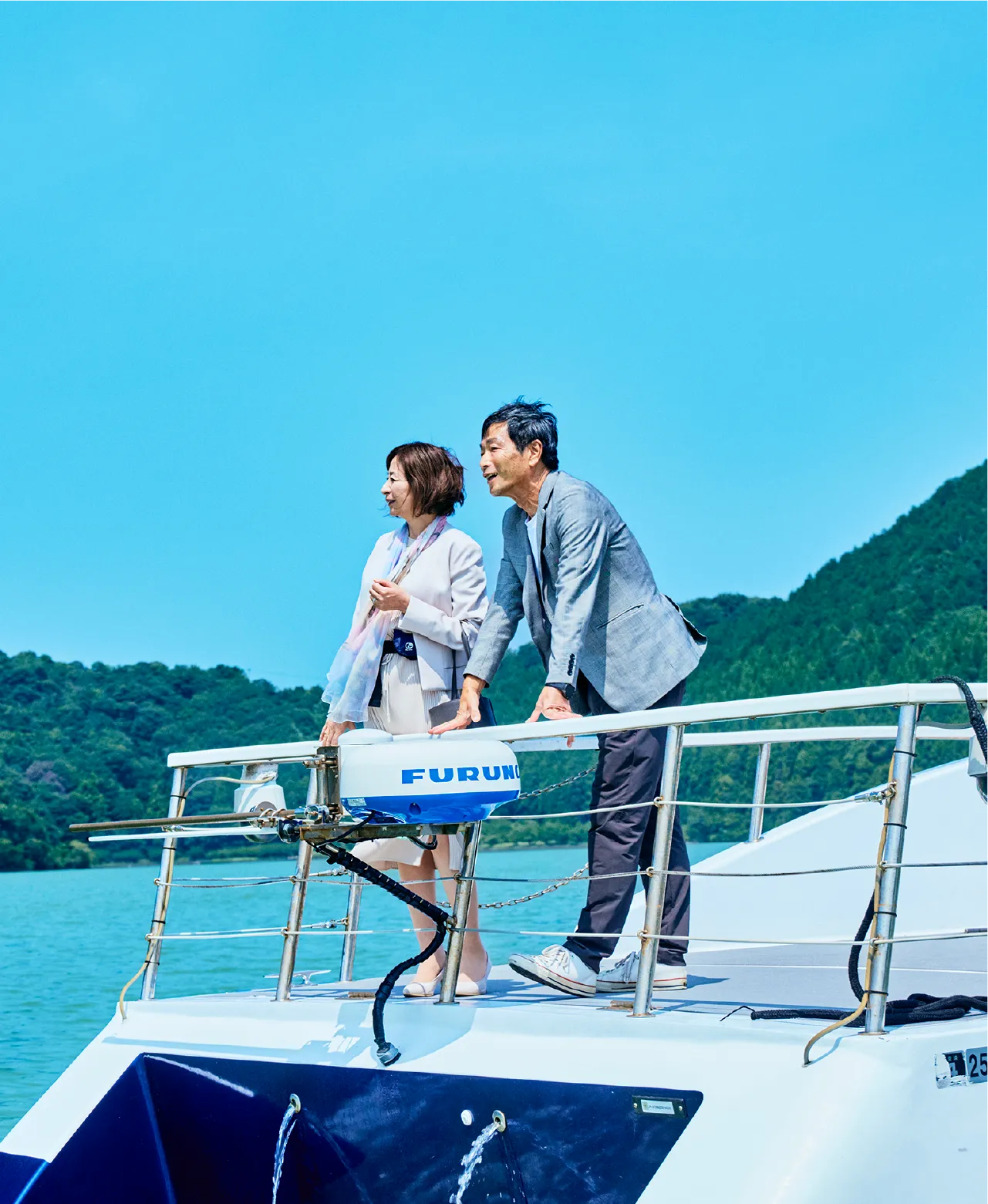 静粛性の高い電池推進遊覧船だからこそ、外に出た瞬間に聞こえてくるのは、鳥の鳴き声や穏やかな波音だけ。船上でしか感じることのできない、特別な体験をご提供します。