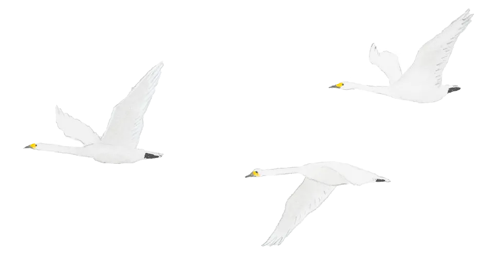 久々子湖は海の水と川の水が混ざり合う汽水湖です。ここは、冬になれば数えきれないほどの野鳥たちが羽を休めに訪れます。