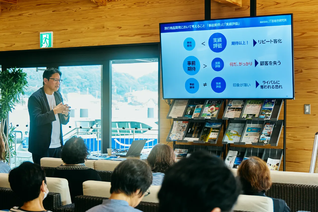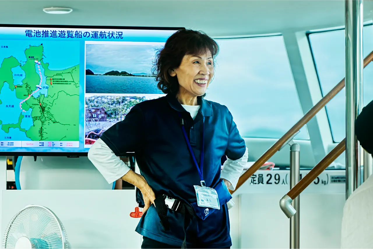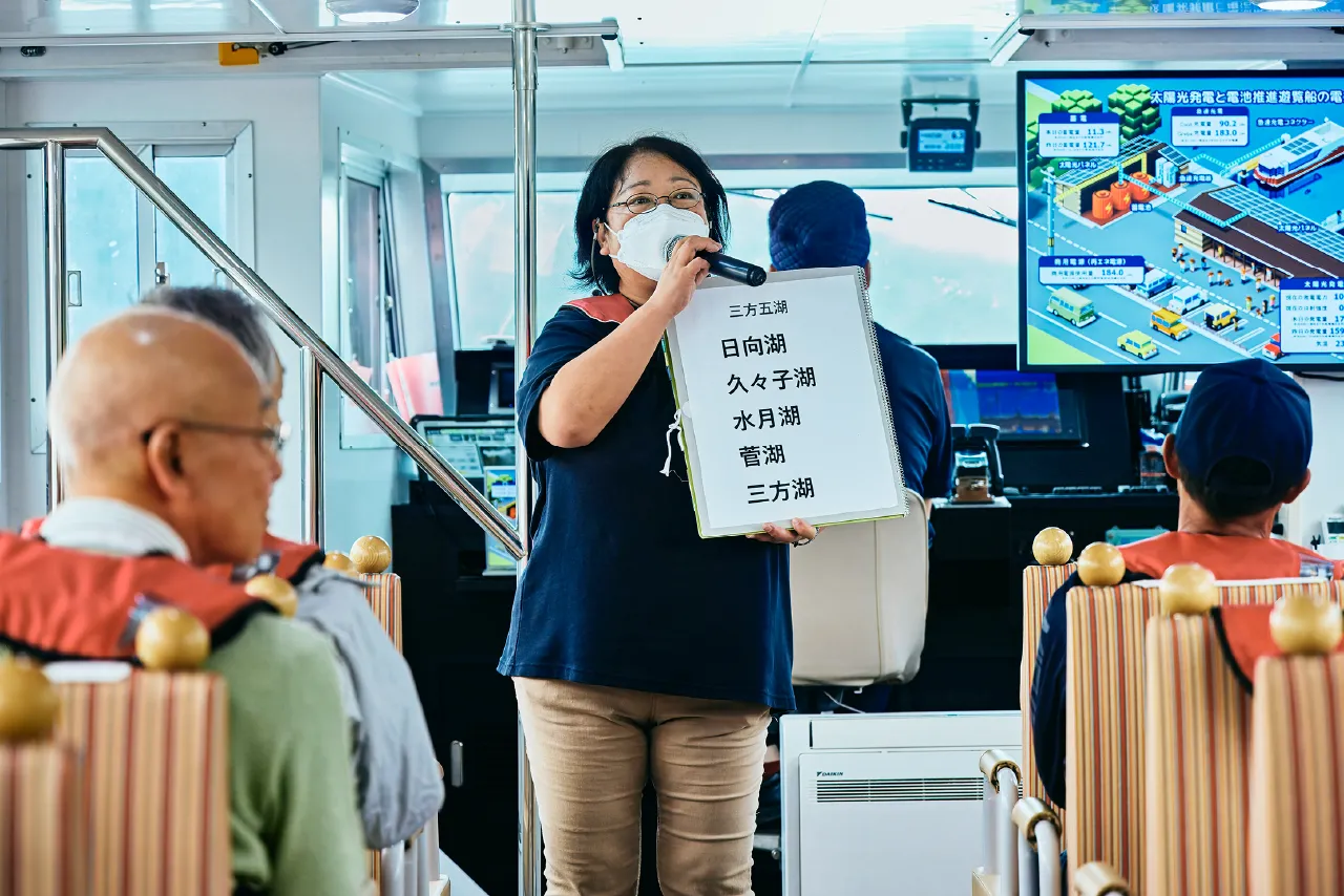 美浜町出身の専属ガイドが毎便同乗し、地元ならではの方言を交えながら、三方五湖の歴史や文化を分かりやすく解説しています。