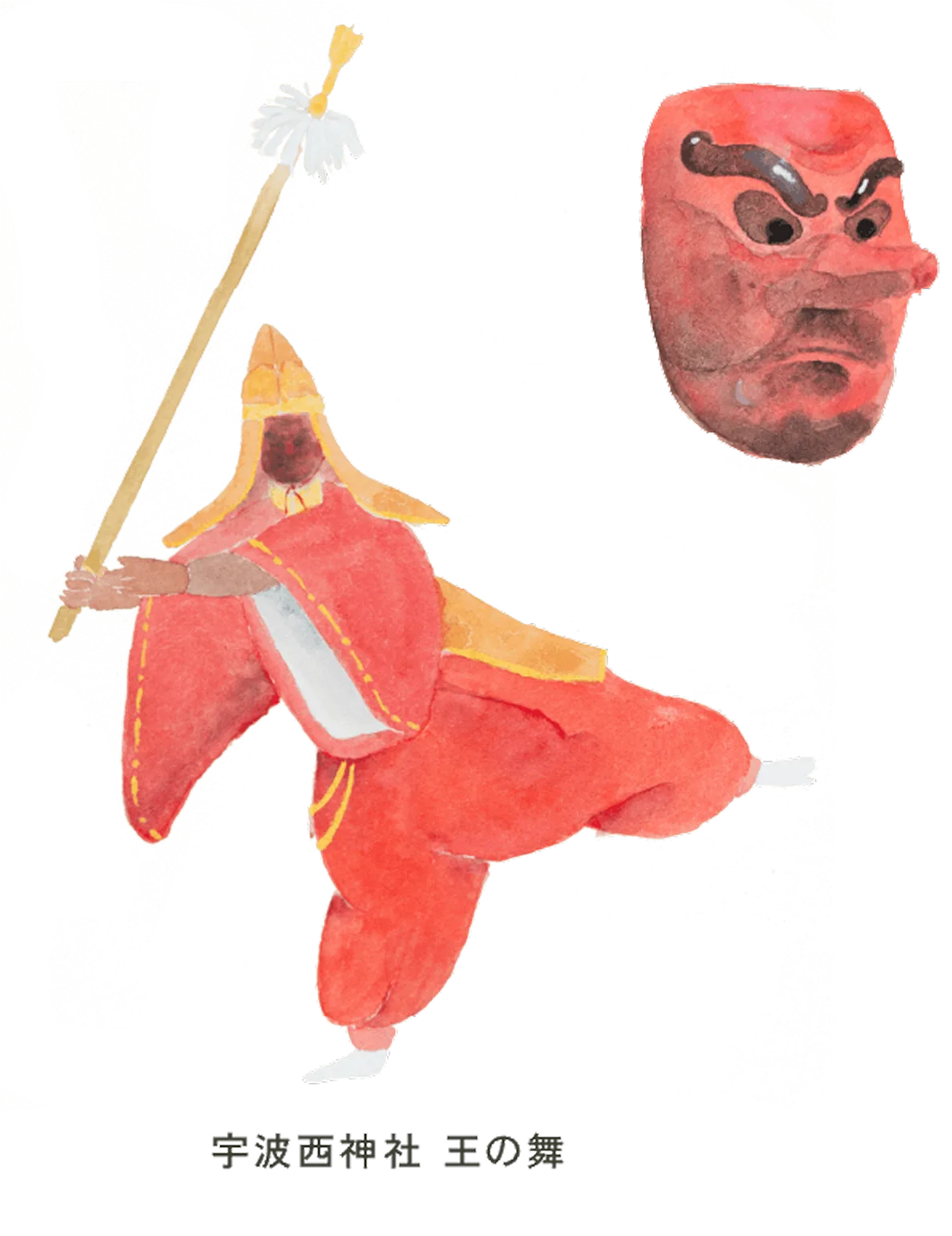 三方五湖の周囲にある、多くの集落の氏神様である宇波西神社は、「福井県の伝説」によると、漁師が日向湖の水中から宇波西神を拾い上げ、村人たちと相談のうえで宇波西川のほとりに造営したとされています。また、古来から北陸道唯一の官幣神社とされ、鸕鷀草葺不合尊(ウガヤフキアエズノミコト)を祭神として祀っています。毎年4月8日に行われる宇波西神社例大祭では、国選択無形文化財に指定されている「王の舞」が奉納されます。