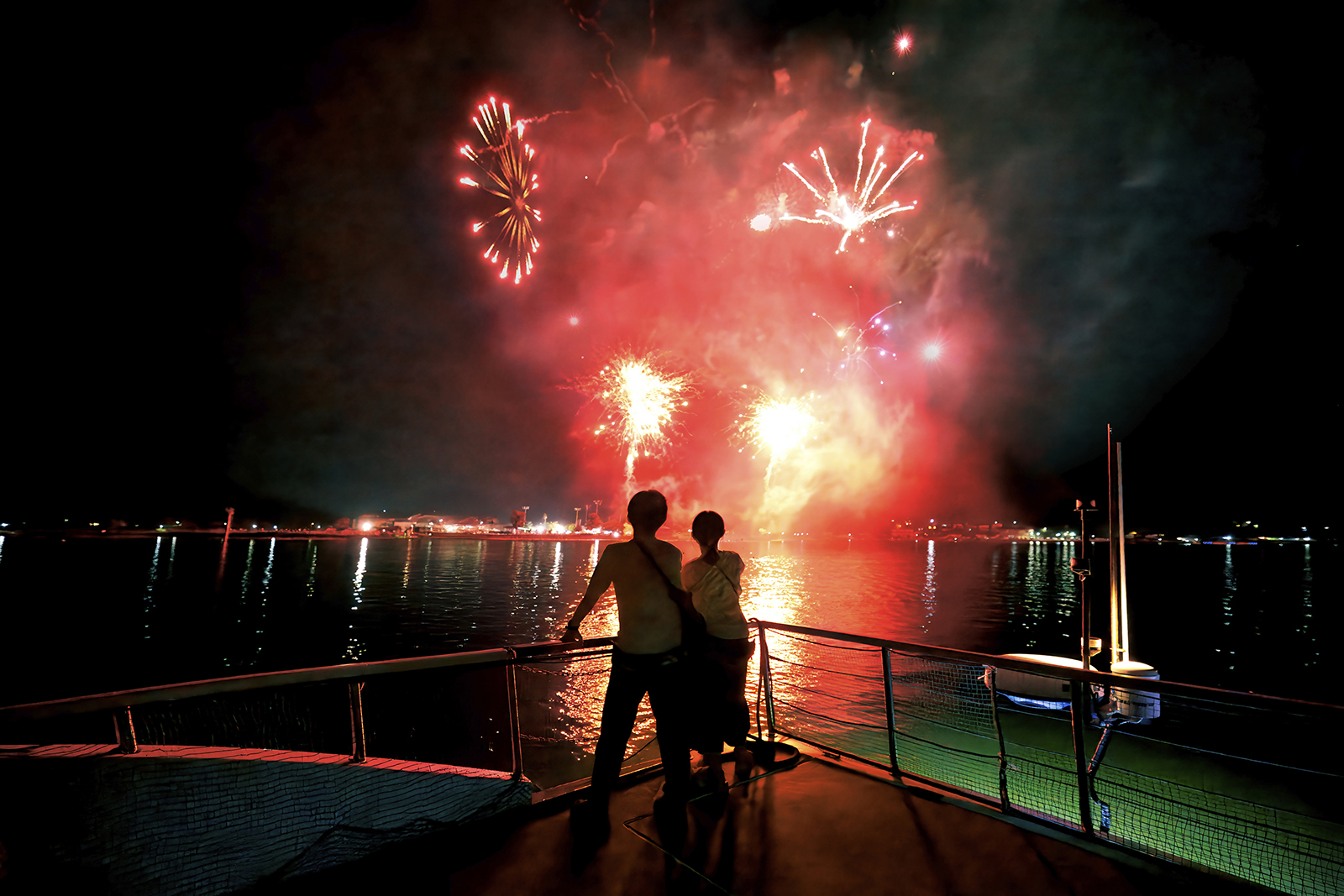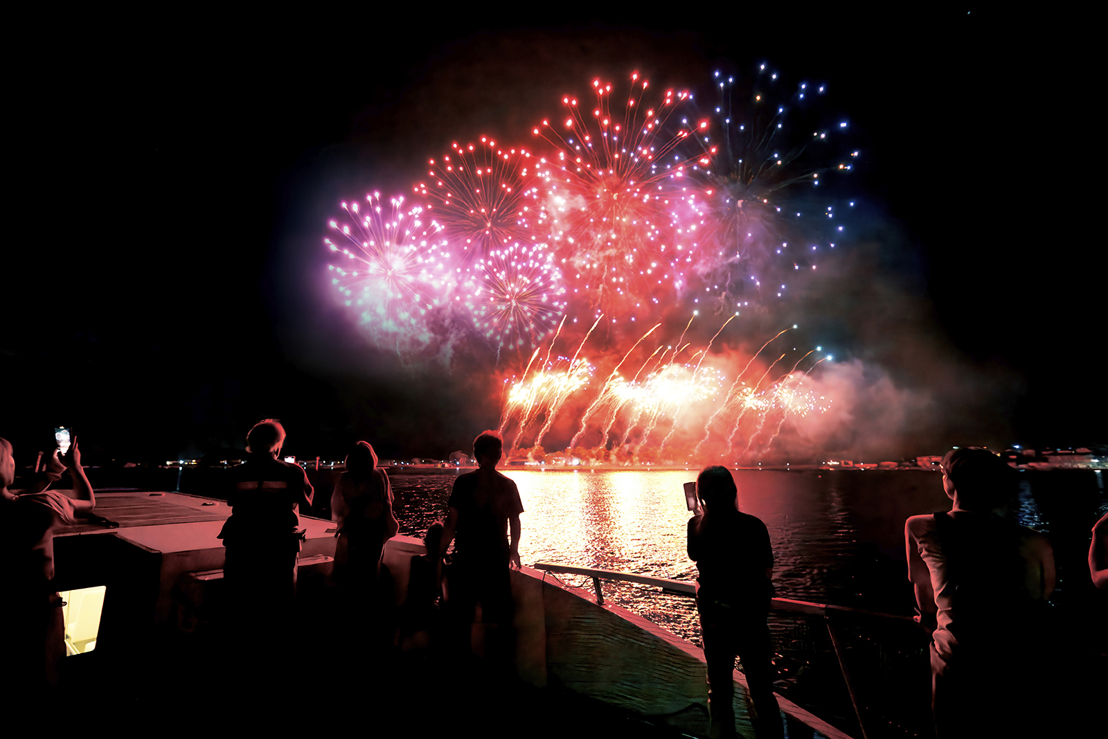 間近でみる花火は大迫力!さらに花火が湖面に反射して、幻想的な空間を提供することができました。