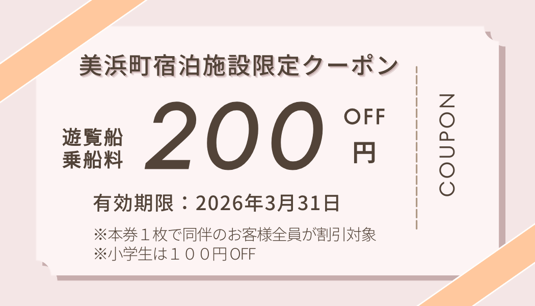 美浜町宿泊施設限定「遊覧船割引クーポン」配布のお知らせ