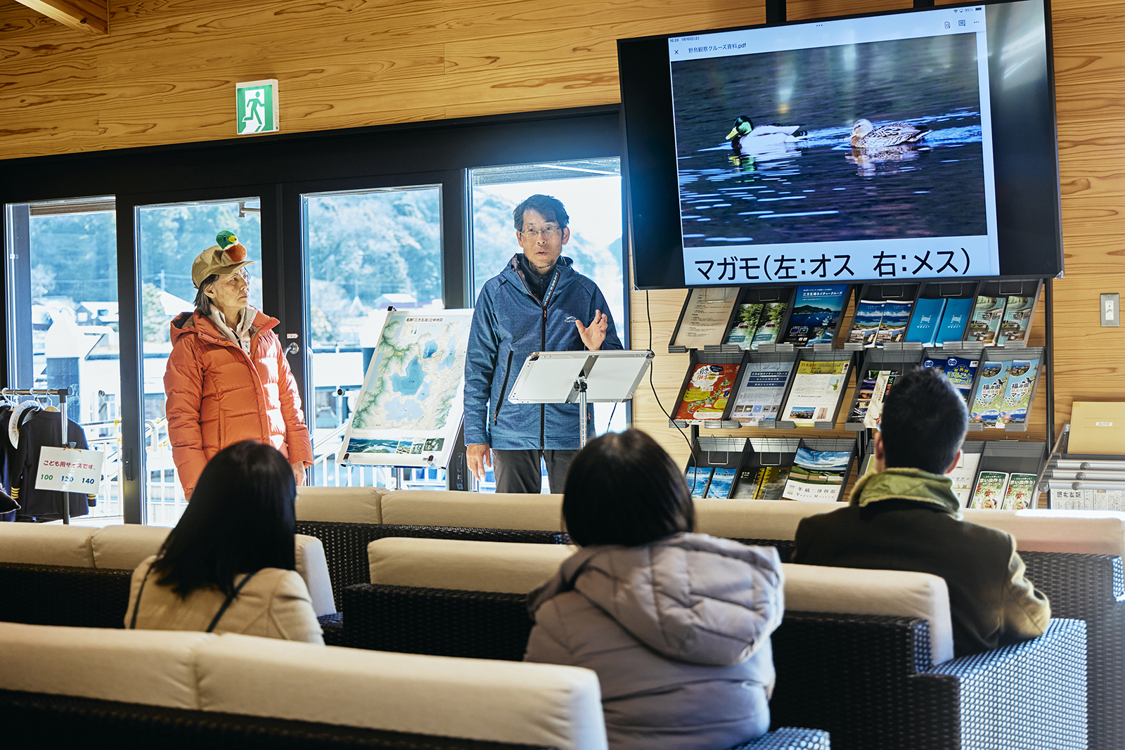日本野鳥の会の専門ガイドが、三方五湖に飛来する冬鳥の特徴をわかりやすく解説しました。