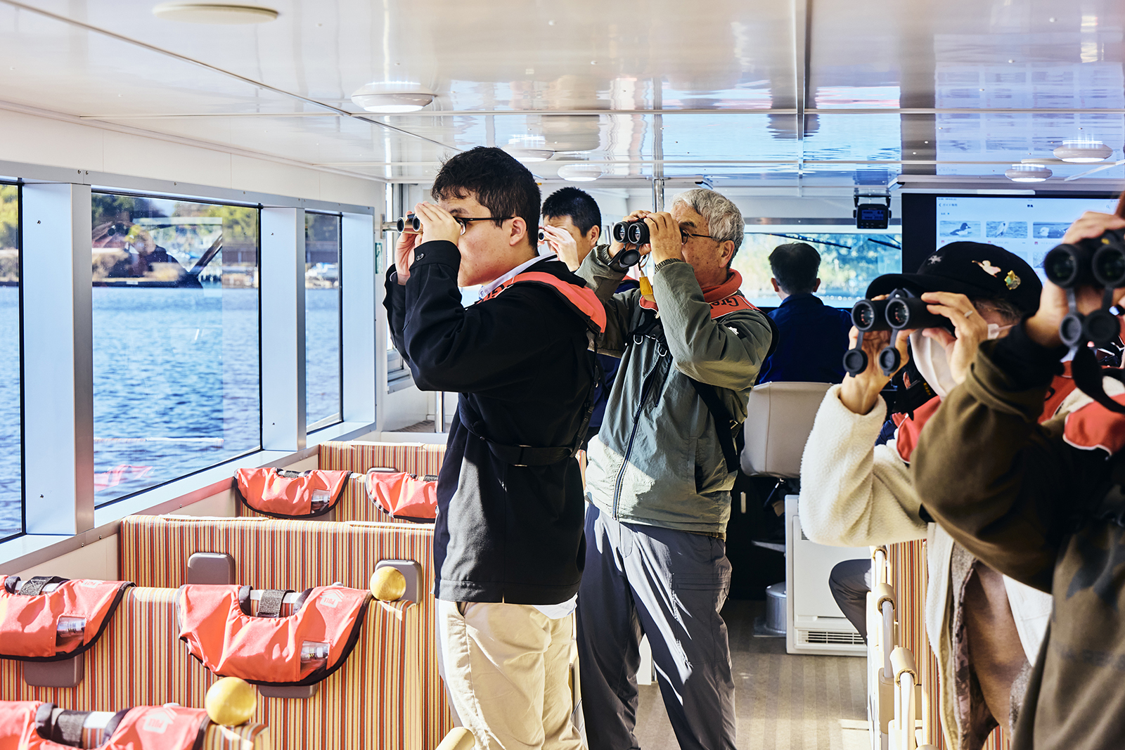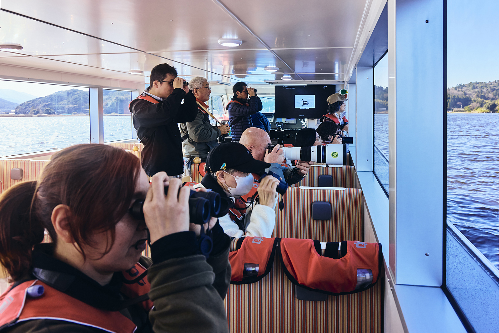 静かな遊覧船で久々子湖・水月湖・菅湖をめぐり、湖上から野鳥をじっくり観察しました。​