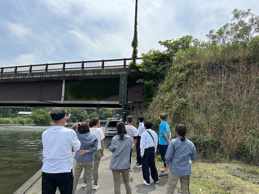 浦見川内での大きな遊覧船との接触等を防ぐために付けてある安全装置の見え方、放送の大きさなどをあらためて確かめました。