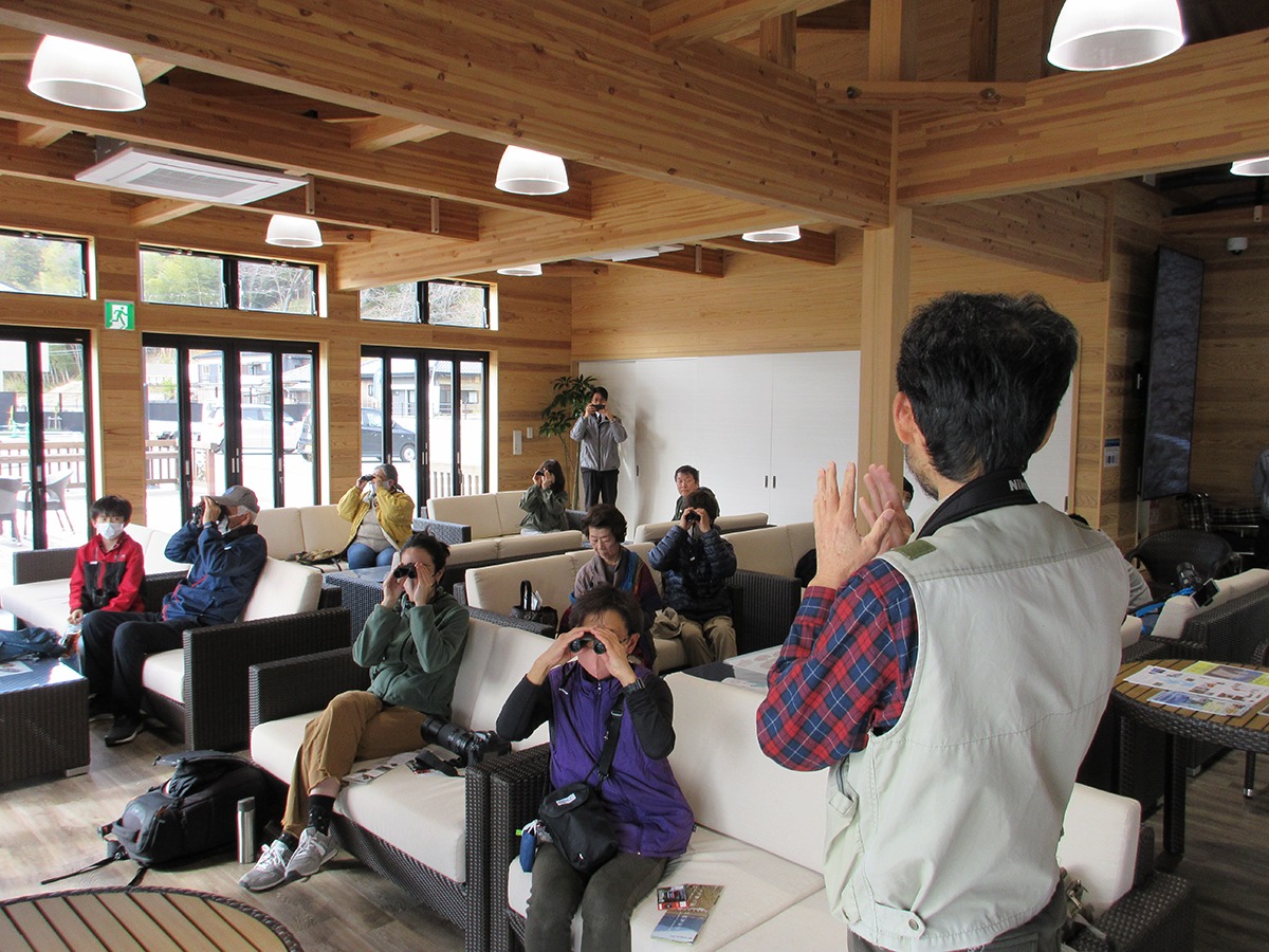 講師の小嶋明男さんからの双眼鏡のレクチャーの時点で、皆さまのワクワク感が伝わってきます。