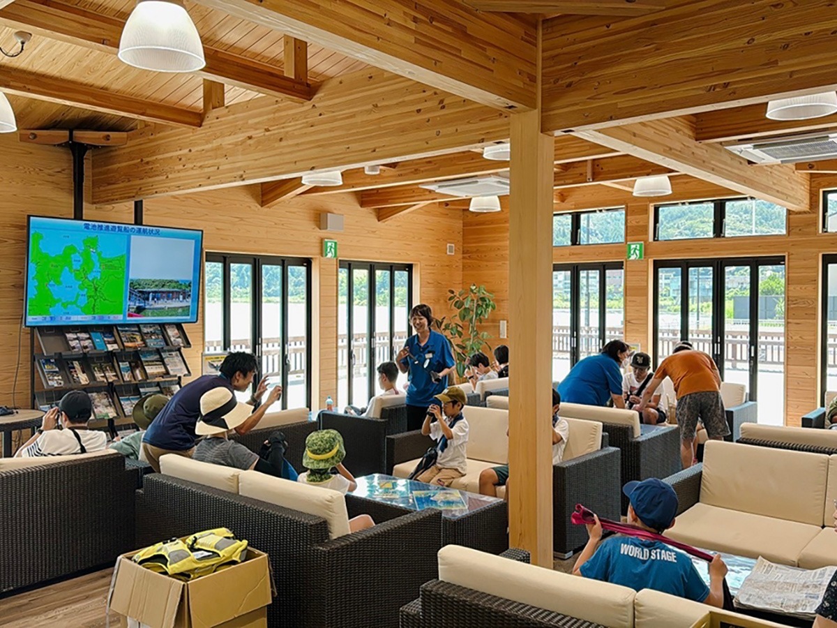 午後いちばんの遊覧船の乗船からスタートし、カーボンニュートラル、ブルーカーボンについての勉強会、電池で動く小型船の体験まで、もりだくさんの体験学習を参加者の皆さんは、暑さにも負けず楽しみながら学んでくださったようでした。