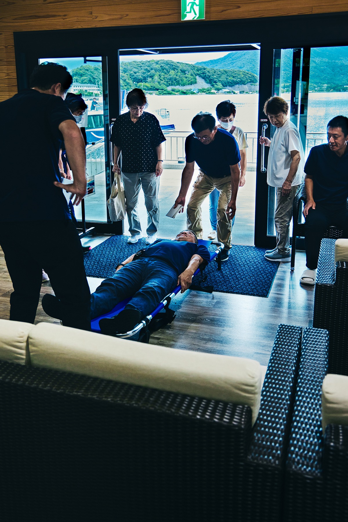 そして、船内火災を想定した、避難誘導訓練を実施しました。