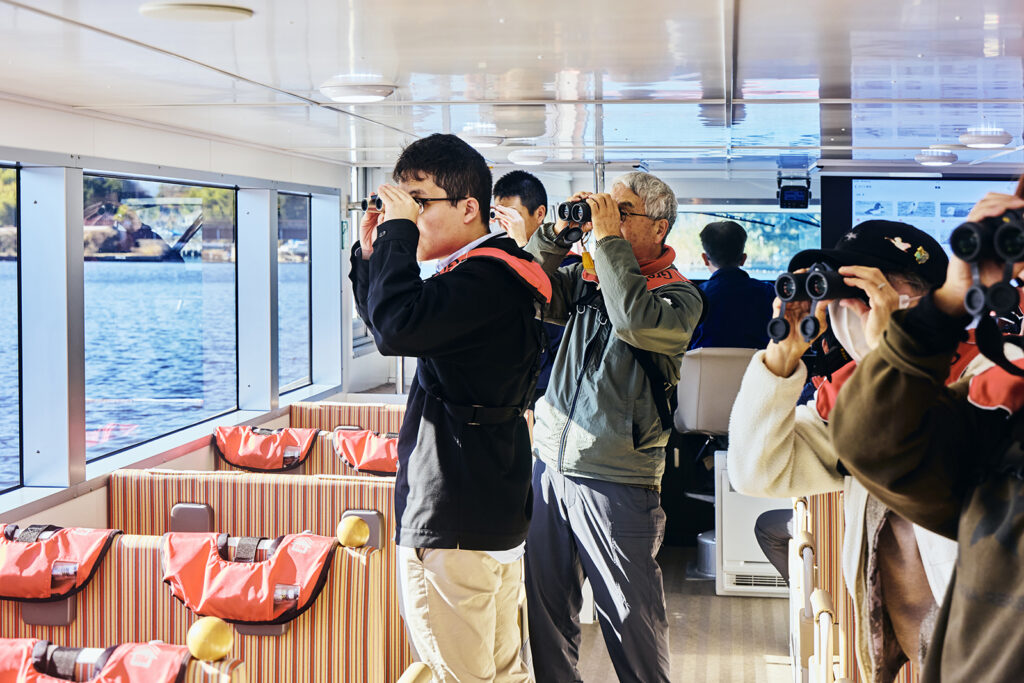 出航から帰港まで約75分のクルーズで、移動中もガイドが随時解説を行うため、観察と学びの両方を味わえます。