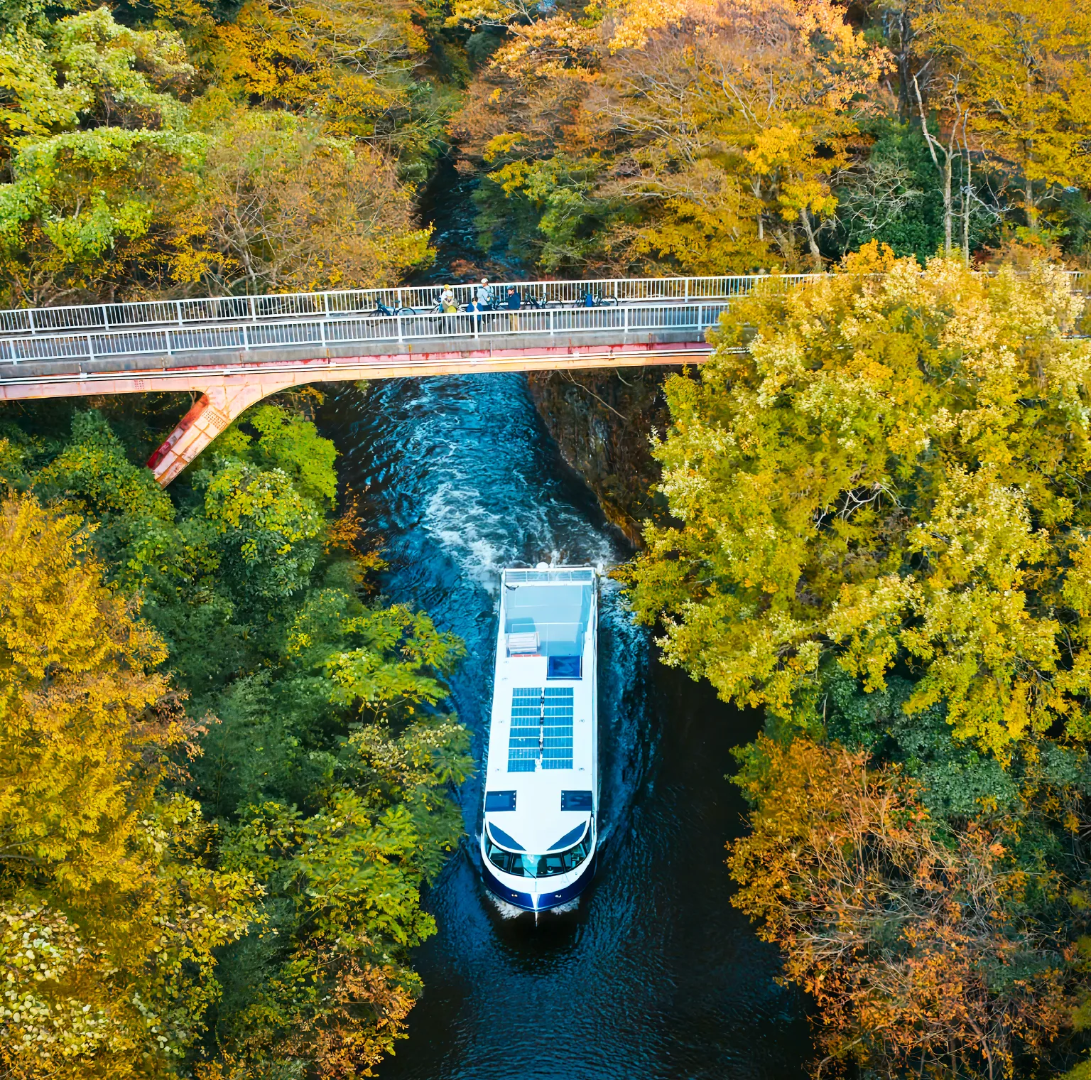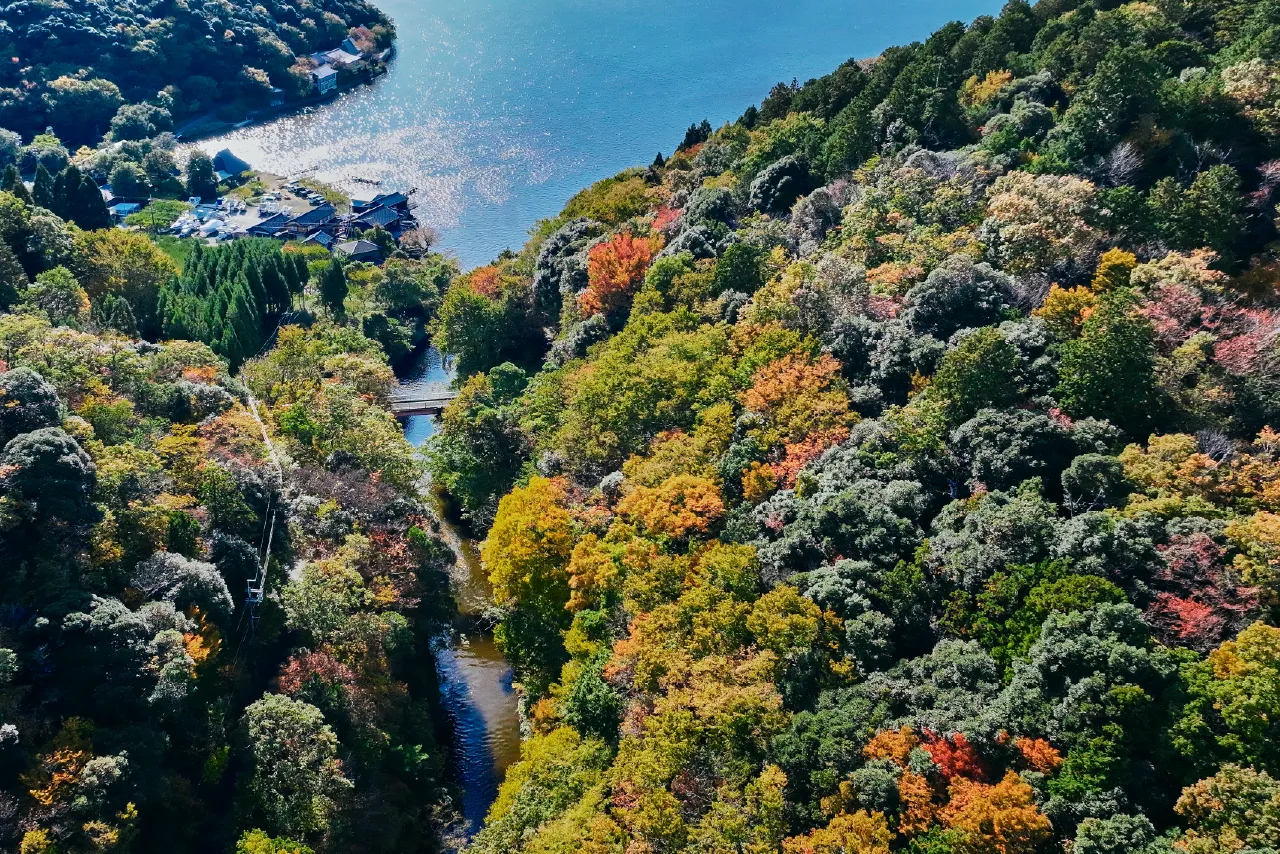 湖を囲む山々が赤や黄色に染まる秋の三方五湖。一年で最も鮮やかな景色を、360°見渡せる特等席でお楽しみ下さい。