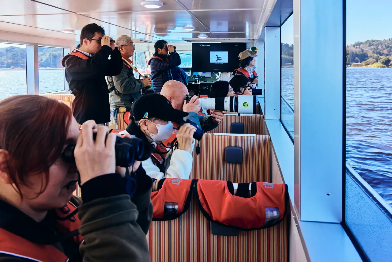 数万羽の野鳥が飛来するこの季節、静かに進む遊覧船から、静寂の中に響く生命の息吹を間近に感じることができます。