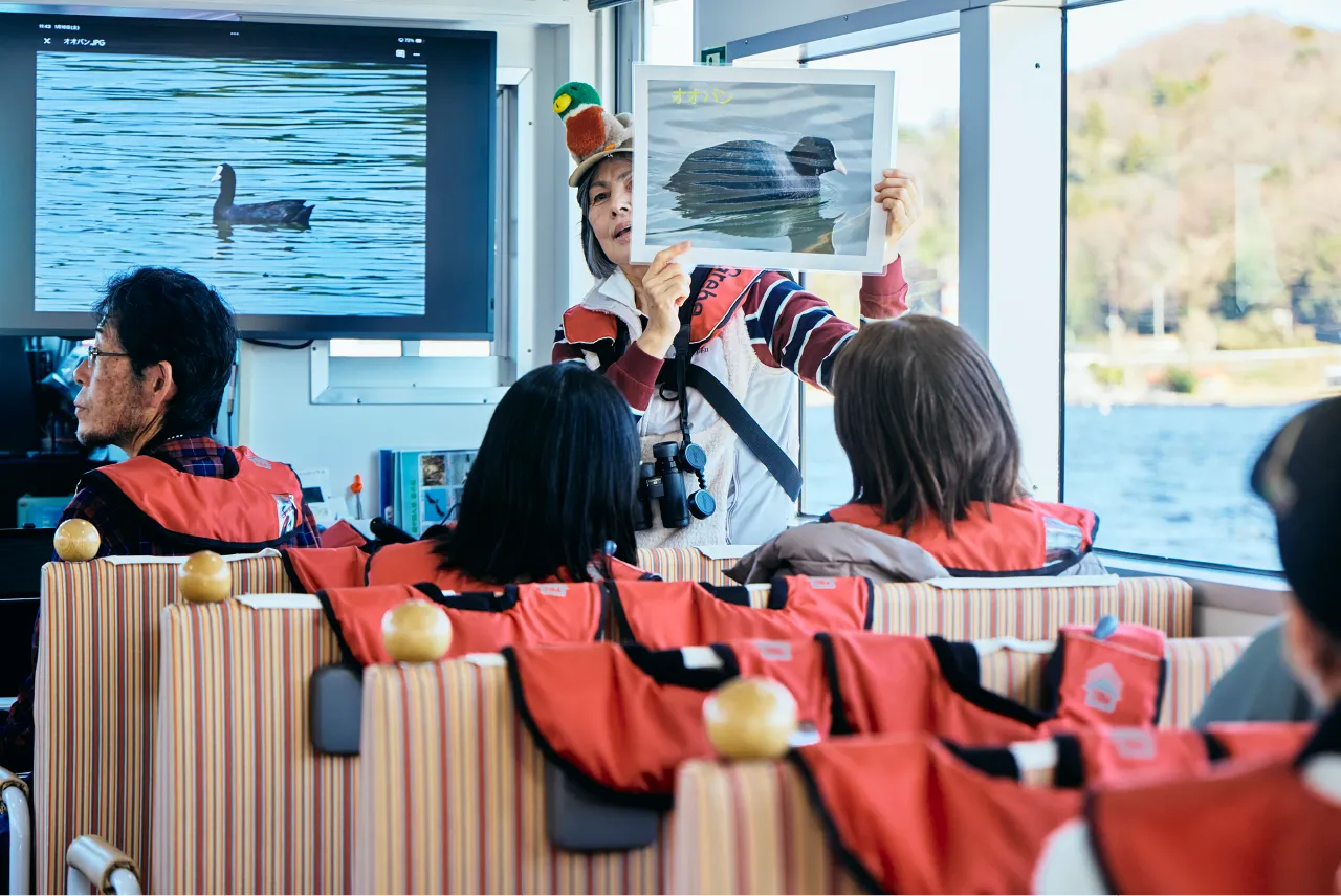 日本野鳥の会の専門ガイドとともに、冬の三方五湖に飛来する冬鳥を間近で楽しむ、期間限定の特別クルーズを運航しています。